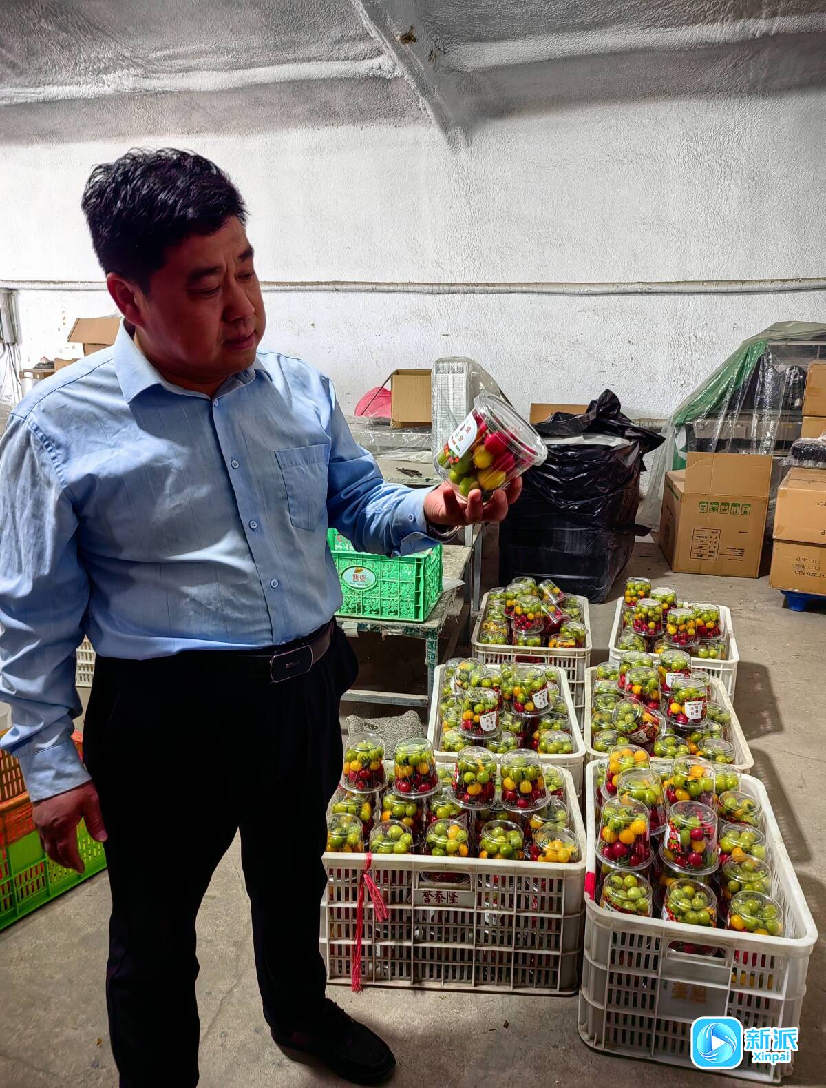 在壽光市的紀(jì)都現(xiàn)代農(nóng)業(yè)共富園區(qū),負責(zé)人正在介紹當(dāng)?shù)靥厣r(nóng)產(chǎn)品。