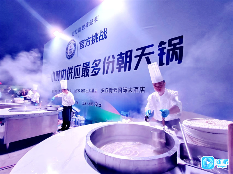 此外,安丘青云國際大酒店發(fā)揮主場優(yōu)勢,攜手濰坊另外兩家酒店發(fā)起“一小時(shí)供應(yīng)最多份朝天鍋”吉尼斯世界紀(jì)錄挑戰(zhàn)。在吉尼斯認(rèn)證官的嚴(yán)格監(jiān)督下,三方團(tuán)隊(duì)默契配合、高效協(xié)作,最終以2728份的成績成功刷新紀(jì)錄。此次挑戰(zhàn)不僅是對傳統(tǒng)美食制作效率的考驗(yàn),更是對濰坊朝天鍋這一傳統(tǒng)名吃標(biāo)準(zhǔn)化、規(guī)?;l(fā)展的成功實(shí)踐,助力濰坊健康食品品牌進(jìn)一步走向全國、邁向世界。