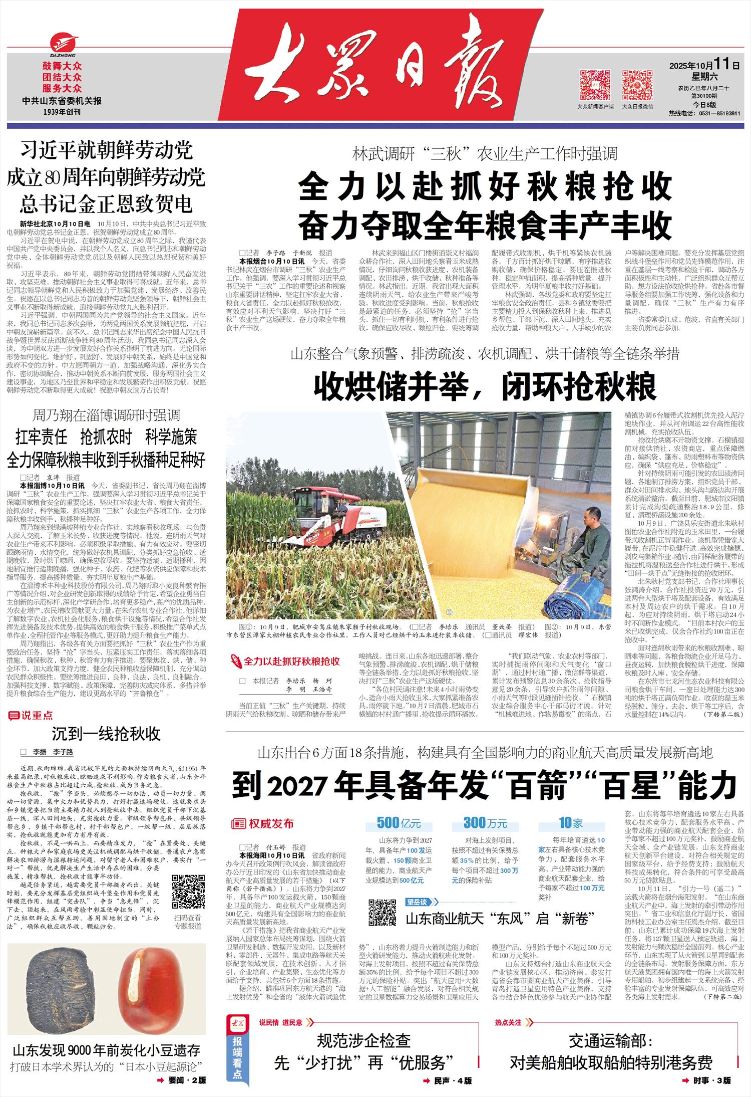 當(dāng)前正值“三秋”生產(chǎn)關(guān)鍵期,持續(xù)陰雨天氣給秋糧收割、晾曬和儲存帶來嚴(yán)峻挑戰(zhàn)。連日來,山東各地迅速部署,整合氣象預(yù)警、排澇疏浚、農(nóng)機(jī)調(diào)配、烘干儲糧等全鏈條舉措,全力以赴抓好秋糧搶收,堅決打好“三秋”農(nóng)業(yè)生產(chǎn)這場硬仗。