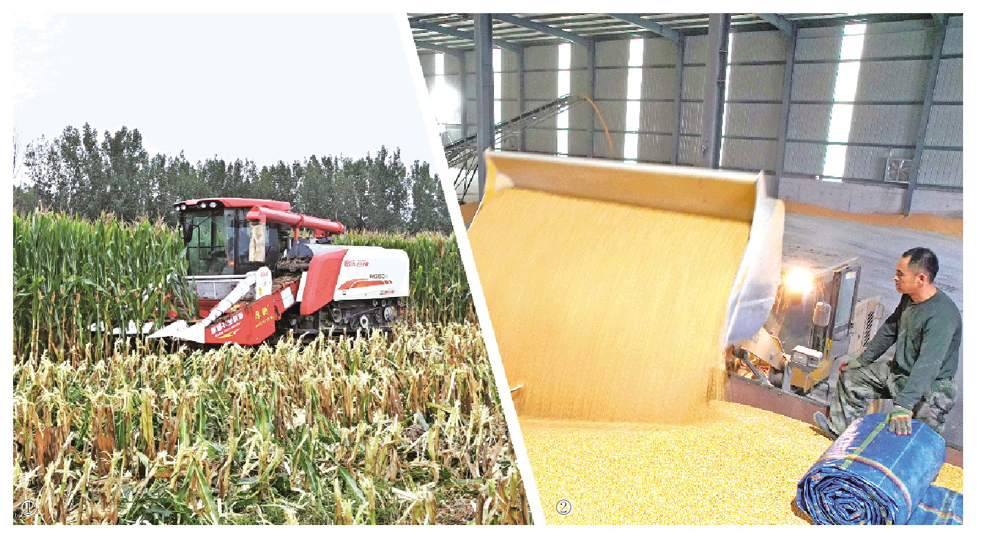 圖①:10月9日,肥城市安駕莊鎮(zhèn)朱家顏子村秋收現(xiàn)場。(□記者李培樂通訊員董效晏報道)圖②:10月9日,東營市東營區(qū)譚家大棚種植農(nóng)民專業(yè)合作社里,工作人員對已經(jīng)烘干的玉米進(jìn)行裝車收儲。(□通訊員繆宏偉報道)